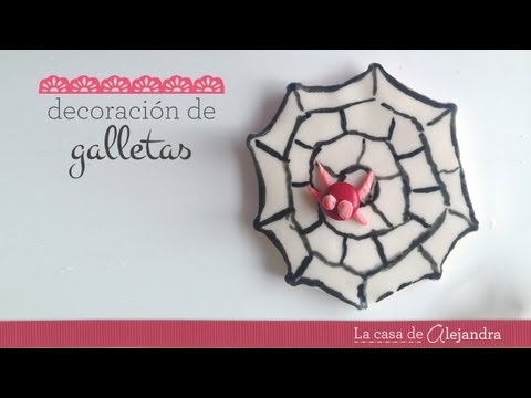 Mientras decoraba las galletas s me ocurrió agregar un pequeña araña de fondant en el centro de la galleta. Para eso tome una pequeña pelotita de fondant y la pinte de color rojo, luego, hice las patitas con pequeñas tiras. Todas las partes de la araña las pegué utilizando icing.
